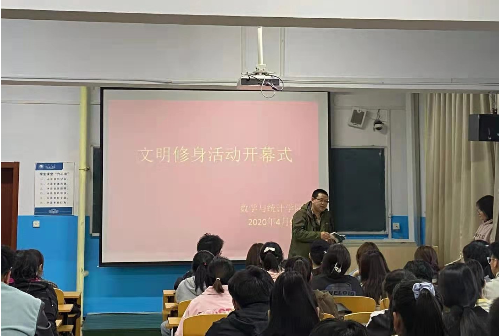 為進一步加強學生思想道德修養、日常行為規范宣傳教育,培養學生正確審美觀、道德觀、行為觀,從身邊事做起,從自我做起,從小事做起養成良好的文明禮儀習慣,4月9日,數學與統計學院在篤學樓401、413、301、313教師分別開展了“文明修身”承諾踐諾活動。全體學生參加活動。