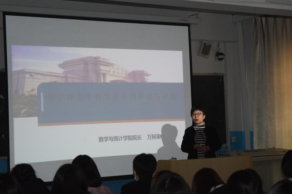 4月14日下午,數(shù)學(xué)與統(tǒng)計學(xué)院院長萬阿英在篤學(xué)樓313教室,為我院師范專業(yè)學(xué)生做了“教學(xué)素養(yǎng)的養(yǎng)成與訓(xùn)練”專題講座。