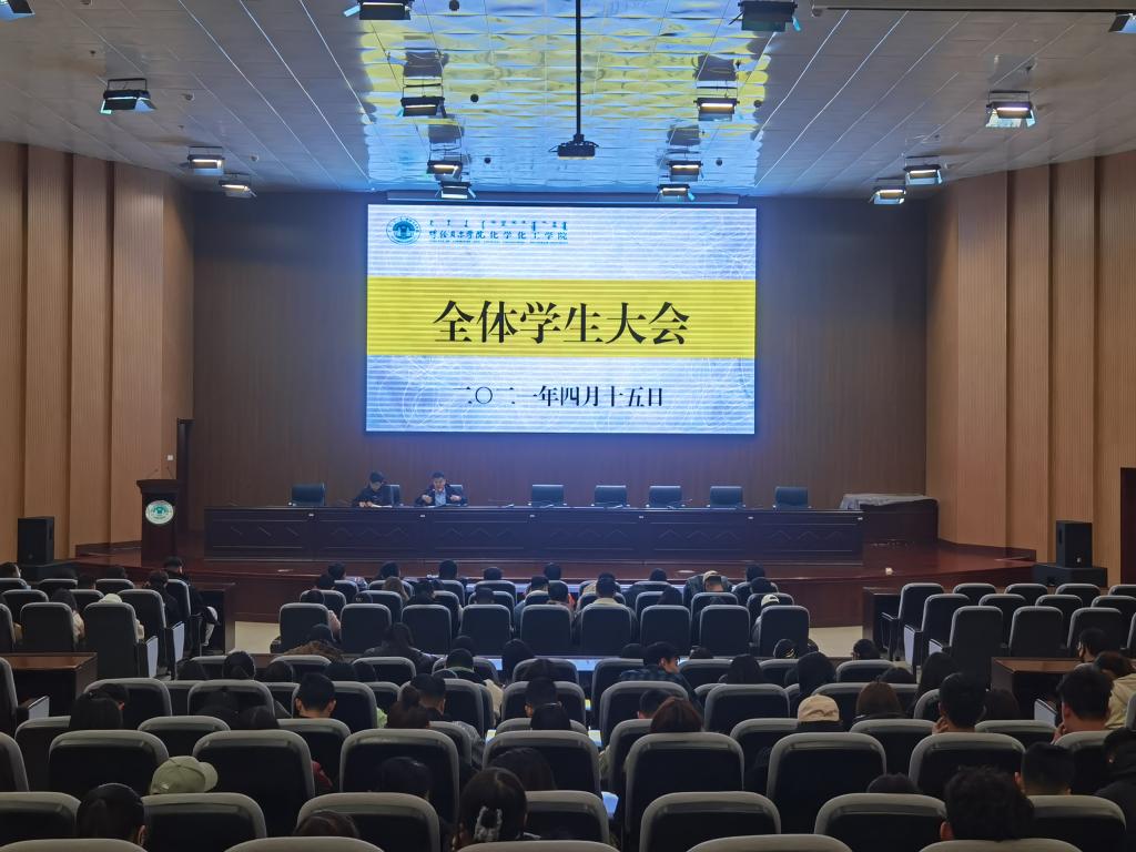 為落實學校關于迎接師范專業認證專家進校的相關工作部署,進一步加強學生文明修身教育,4月15日,化學化工學院在圖書館四樓報告廳召開了全體學生大會。化學化工學院黨總支副書記劉朋、團總支書記孟慶永和全體學生參加。