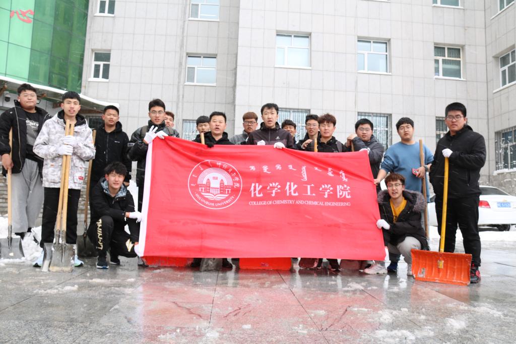 為落實《呼倫貝爾學院黨史學習教育“我為群眾辦實事”實踐活動工作方案(征求意見稿)》文件精神,近一步開展“我是黨員干部?我幫你”“我是團學工作者?我幫你”“我是團員?我幫你”新時代文明實踐志愿服務活動,4月16日,化學化工學院組織學院青年志愿者開展集中清理科技樓下積雪的活動,黨總支副書記劉朋、團總支書記孟慶永參加活動。