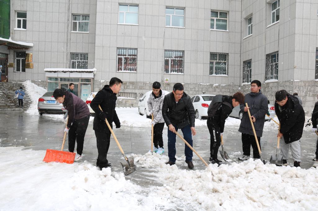 大家齊心協力,分工合作,配合默契,除雪行動,成效顯著,為廣大師生清理了一條方便之路。雖然天氣較冷,積雪較厚,但這一點也沒有影響師生們的熱情和工作效率。