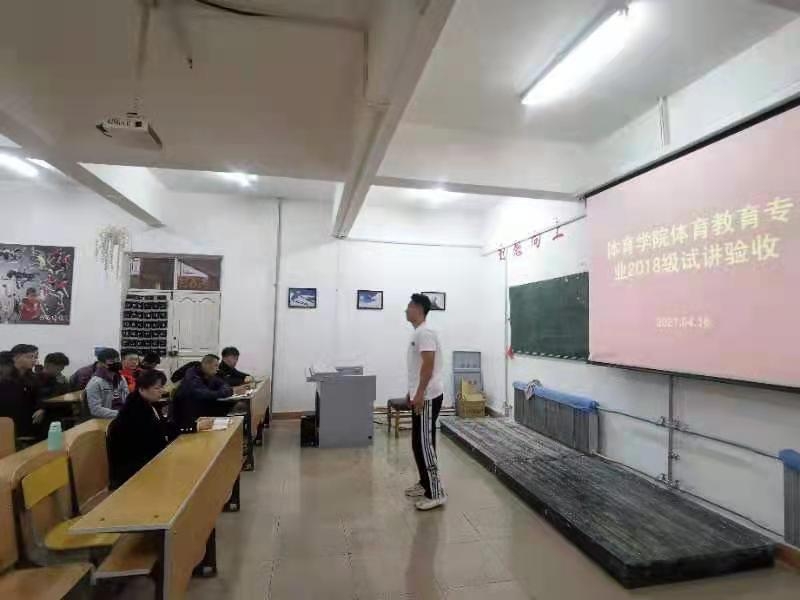 4月18日至25日,體育學院體育教育系在體育館進行了2018級體育教育專業師范生試講驗收工作。在體育學院副院長林劍冬的帶領下,體育教育系主任周慶柱、副主任姜瑩參加了本次驗收工作。