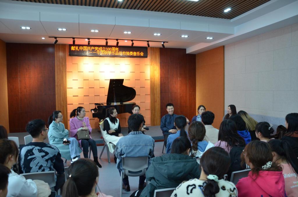 音樂會后,周民教授和徐牧老師同鋼琴系師生進行了座談,就鋼琴考研與如何科學有效的練琴等問題進行了交流。
