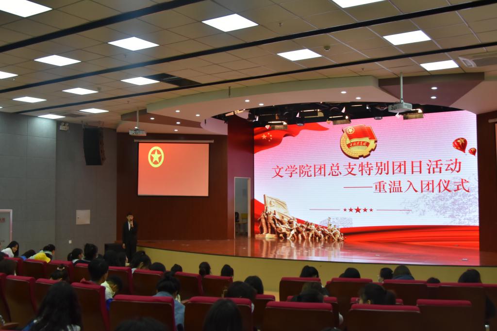 為慶祝中國共產(chǎn)黨建黨100周年,紀(jì)念五四運動102周年,引導(dǎo)廣大團員青年厚植愛黨、愛國、愛社會主義的真摯情感,5月4日,文學(xué)院團總支在崇文樓B座七樓小劇場開展文學(xué)院團總支特別團日活動——重溫入團儀式。