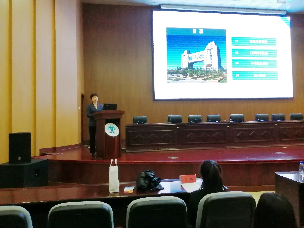 5月19日下午,外國語學院邀請實習實訓基地滿洲里口岸集團常務副總、資深職業經理人楊繼燕等一行五人走進校園,為外國語學院2018級學生做題為《大學生職業生涯規劃與就業形勢》的講座。講座由齊穎副院長主持,學院黨總支書記金鑫鑫、院長呂佩臣及系部主任到場聆聽。