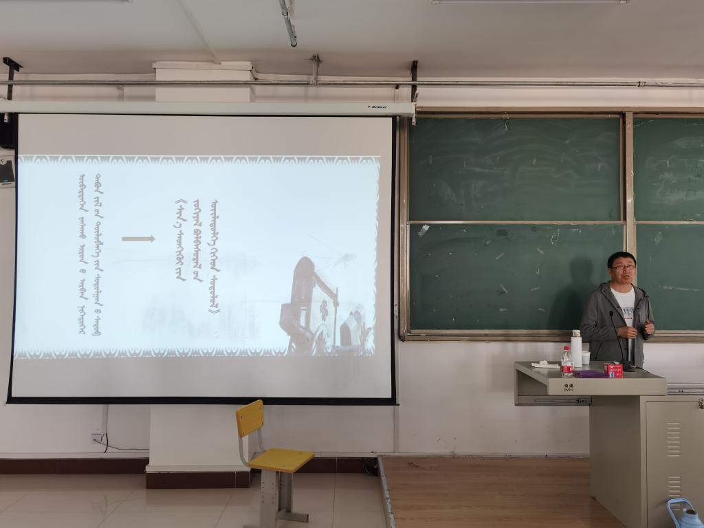 5月22日上午,蒙古學學院在崇文樓B座301教室舉辦了教學研究為主題的學術講座。本次講座特邀自治區草原英才、自治區教學名師,陳巴爾虎旗民族小學賽那老師,講座題目是《關于課程資源開發研究》。蒙古學學院實驗實訓中心主任胡斯樂主持講座。蒙古學學院部分教師及2018級師范類學生共80余名人聆聽了講座。