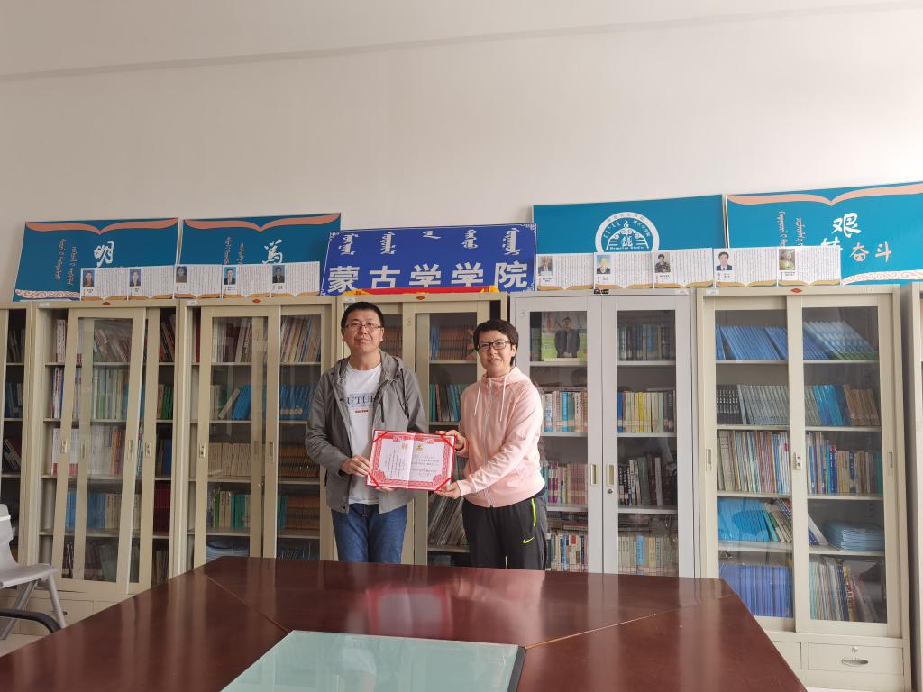 賽那老師從課程資源開發的研究意義和原因、具體實例、實驗等三個方面深入淺出的講述了講座內容。講解中把蒙語文課程與音樂課、數學課、美術課等多項課程教學內容程聯合到一起,結合多年的研究與教學經驗列舉30個生動的例子進行教學展示,共同分享教育實踐中的成果與經驗。講座結束后,聘請賽那老師為蒙古學學院實習指導教師,并由雪晴副院長頒發了聘書。