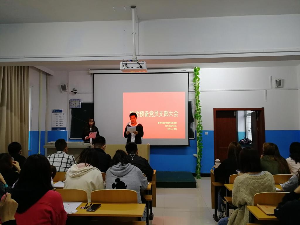 大會嚴格按照發展黨員的組織程序進行,會議在全體人員奏唱國歌中拉開了序幕。首先,發展對象本人宣讀入黨志愿書,向支部大會匯報對黨的認識、入黨動機以及自己在培養考察期間思想、學習、生活、工作中的表現。隨后,入黨介紹人介紹發展對象的培養過程、發展對象的現實表現及對其入黨的態度。經支部黨員充分討論及審議,出席大會的全體黨員進行了無記名投票,大家一致同意發展辛艷茹等75名同志為中共預備黨員。