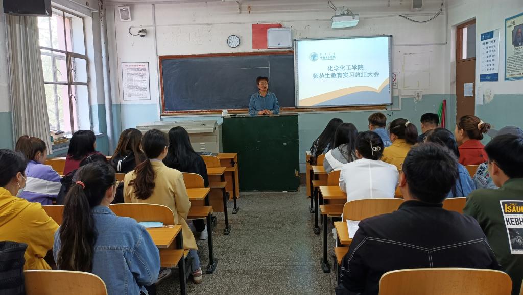 5月28日下午,化學化工學院在工程樓206召開了2021屆化學(師范)專業集中教育實習總結大會。化學系主任侴曉玉主持會議。化學專業實習全體學生參與,化學化工學院副院長畢瑞金出席會議。