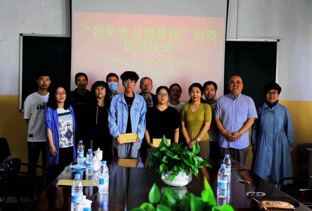 為進一步把黨史學習教育成效轉化成為群眾辦實事的實際行動,把黨的關懷送到家庭困難大學生心坎上,6月15日,數學與統計學院教工黨支部與呼倫貝爾市教育招生考試中心黨支部聯合開展“我是黨員我幫你”志愿服務工作,呼倫貝爾市教育招生考試中心黨支部慰問數學與統計學院兩名貧困大學生,并為兩名大學生送來助學金。