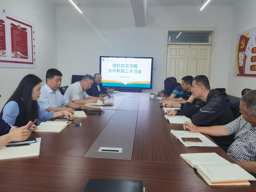 6月16日,繼續教育學院組織召開全體教職工學習會,由何平書記領學。