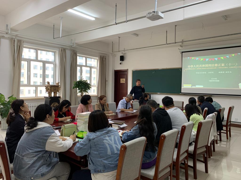 呂興瑞書記立足專業背景、結合專業特長,以《中華人民共和國刑法修正案(十一)》為主題切入點,分別就修改刑法總體思路、新增和修改的罪名、刑法修正案(十一)主要內容進行了全面細致的講解,并結合如何堅持黨的優良工作作風、踐行初心使命、立足崗位建功立業謀發展、談認識,引導教師黨支部黨員提高思想認識,加強黨性鍛煉,堅定理想信念,樹立法學院教師黨員隊伍新形象。