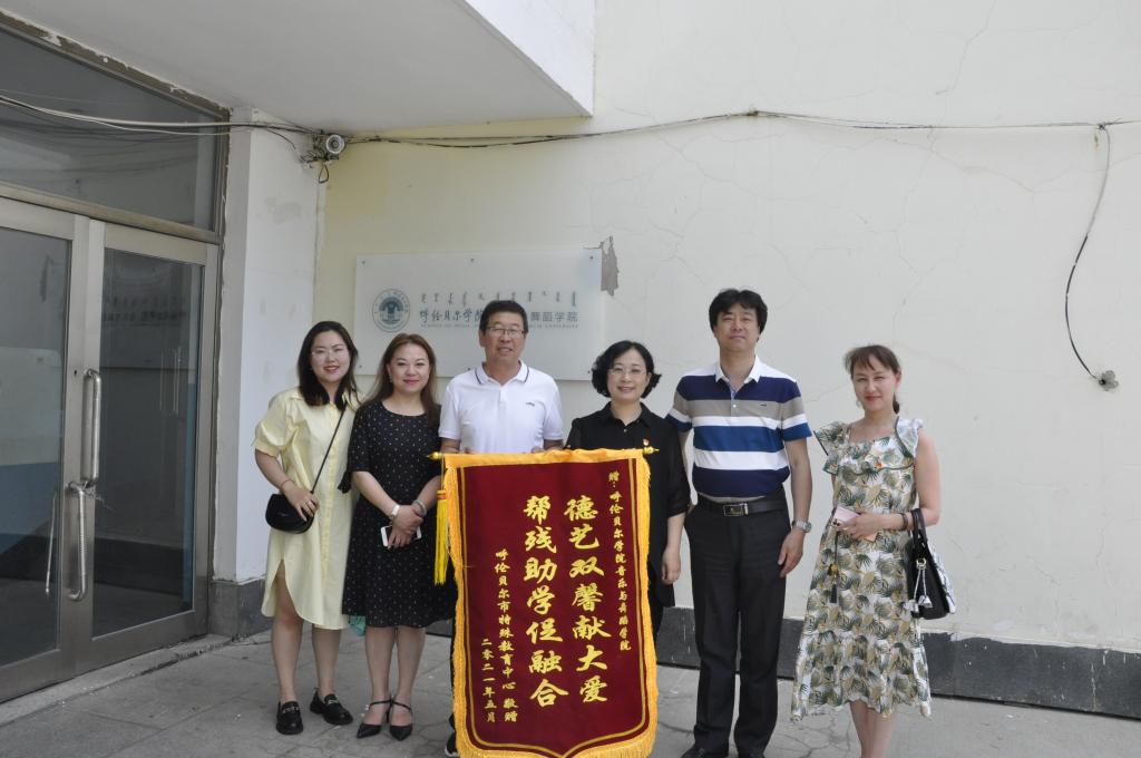 6月25日上午,呼倫貝爾市特殊教育中心閆曉玲校長(zhǎng)一行三人赴音樂與舞蹈學(xué)院贈(zèng)送“德藝雙馨獻(xiàn)大愛 幫殘助學(xué)促融合”錦旗,以表達(dá)音樂與舞蹈學(xué)院助力特殊教育中心參加海拉爾區(qū)教育系統(tǒng)合唱比賽的謝意。