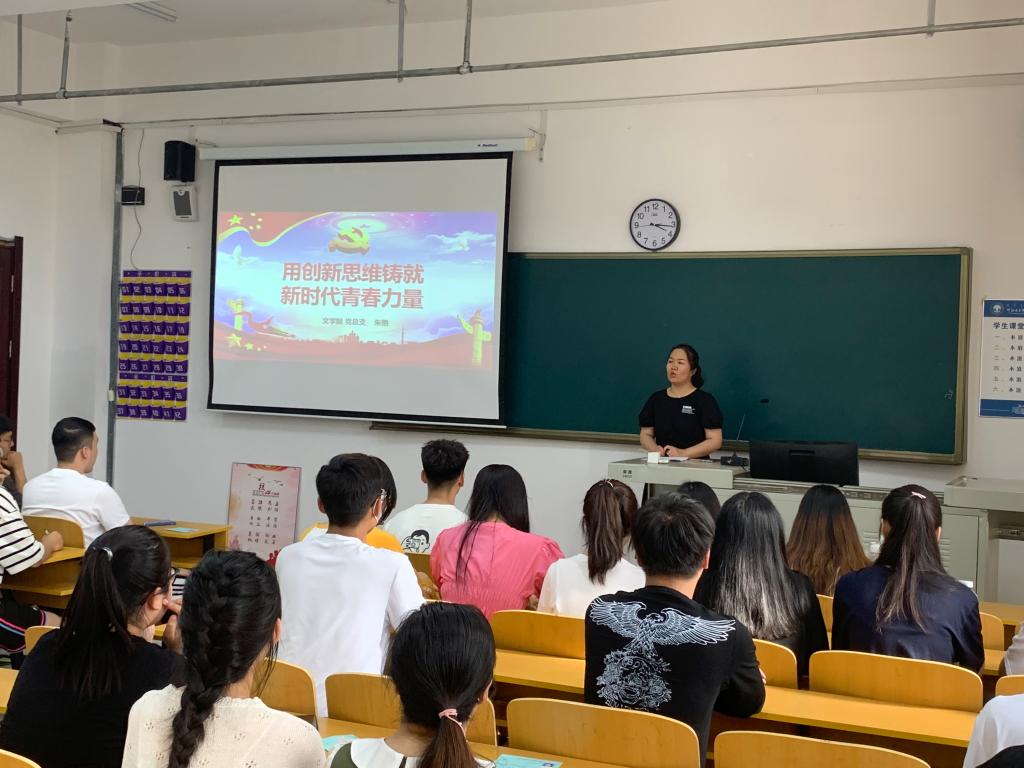 文學院黨總支副書記朱艷專題黨課以“學黨史,用創新思維鑄就新時代青春力量”為題,以中國幾代國家領導人對創新的觀點為切入點,講述了中國共產黨在發展中的理論創新,以及理論創新和實踐創新的關系,并結合當代大學生的擔當和使命進一步闡述了創新的深層次內涵。