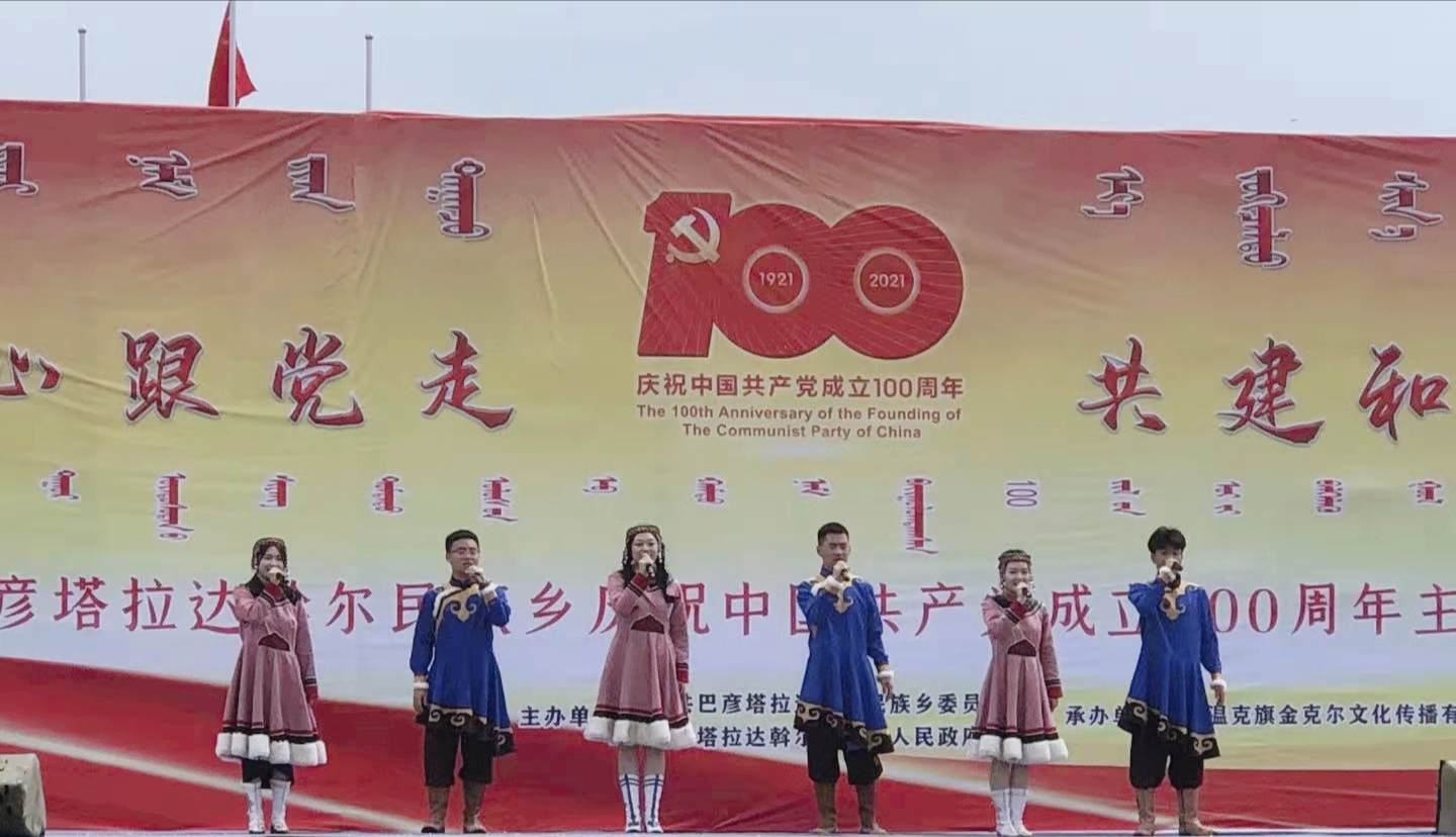 6月26日,鄂溫克族自治旗巴彥塔拉達斡爾民族鄉舉辦了“團結一心跟黨走,共建和諧新牧區”——巴彥塔拉達斡爾民族鄉慶祝中國共產黨成立100周年牧民那達慕大會。我校烏蘭牧騎聲樂隊應邀承擔了本場那達慕大會開幕式的文藝演出工作。
