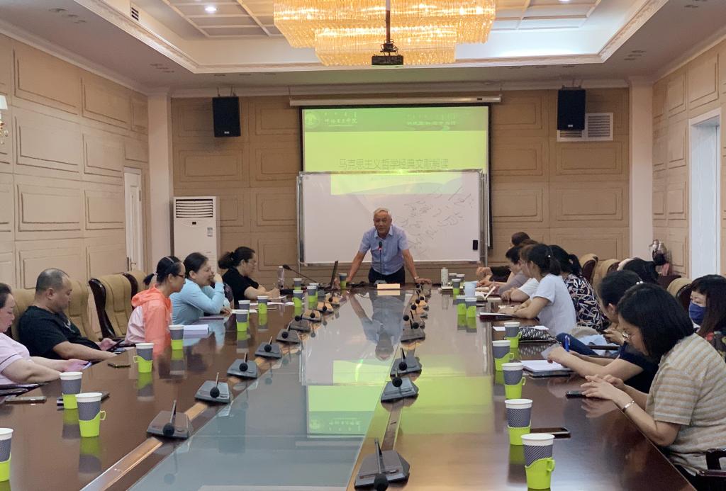 7月5日,馬克思主義學院邀請內蒙古財經大學馬克思主義學院烏峰教授,在圖書館三樓報告廳舉辦《馬克思主義哲學經典文獻解讀》和《國家社科基金選題與申報指導》專題講座。馬克思主義學院全體教師和相關文科專業教師參加講座。馬克思主義學院副院長吳秀芳主持講座。