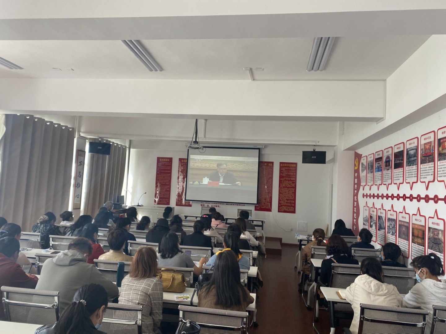 會上,教育學院黨總支書記姜明紅領學了中央民族工作會議精神和習近平總書記給全國高校黃大年式教師團隊代表的回信內容,并傳達了全區教育系統視頻工作會議精神。她結合學院實際,對黨史學習教育、疫情防控、支部建設、學生工作等進行了部署。