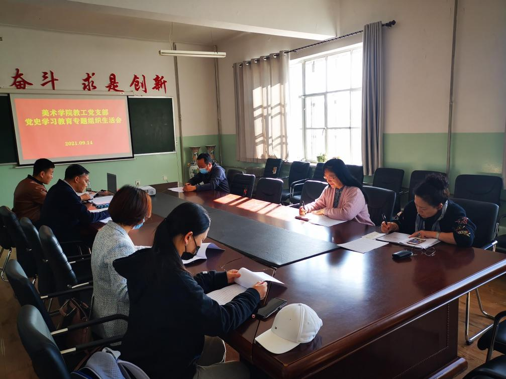 按照學校黨委關于開好黨史學習教育專題組織生活會的通知要求,9月14日下午,美術學院教工黨支部分兩組在尚行樓509、212會議室召開黨史學習教育專題組織生活會。支部全體黨員同志參會。