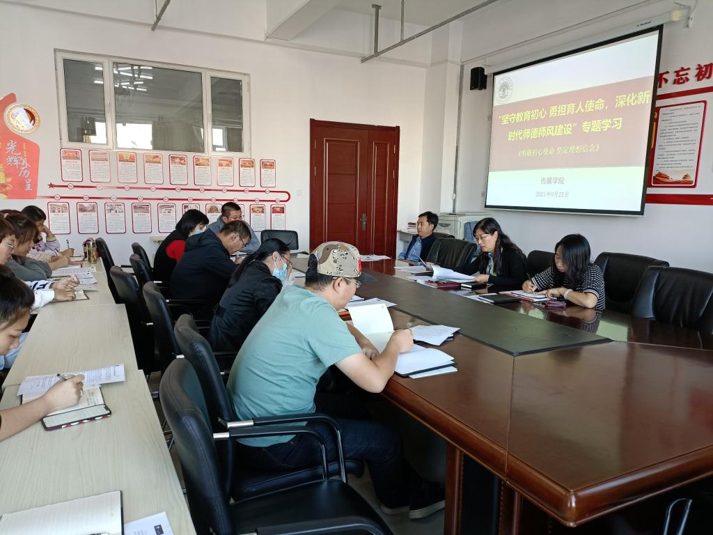 為了進(jìn)一步推進(jìn)師德師風(fēng)建設(shè)常態(tài)化發(fā)展,更好的貫徹習(xí)近平總書記關(guān)于教育的重要論述和全國教育大會(huì)精神,按照我校舉辦“堅(jiān)守教育初心 勇?lián)耸姑罨聲r(shí)代師德師風(fēng)建設(shè)”專題網(wǎng)絡(luò)培訓(xùn)的部署,9月22日下午,傳媒學(xué)院領(lǐng)導(dǎo)班子帶領(lǐng)學(xué)院全體教職工在崇文樓A420會(huì)議室開展師德師風(fēng)專題學(xué)習(xí)。