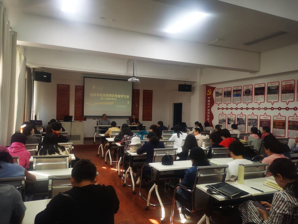 9月22日下午,教育學院在藝術樓501會議室召開師德師風專題學習會議暨師德師風承諾書簽訂儀式。教育學院全體教職工參加會議。
