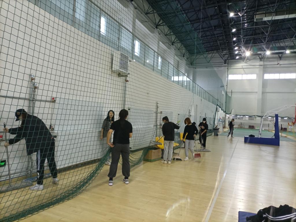 在室外勞動中,師生黨員先后頂著雨在足球館外清理雜草和建筑垃圾,平整土地。在室內勞動中,大家打掃羽毛球、籃球場地和辦公區衛生。黨員們分工明確,忙而不亂,干勁十足,不怕臟、不怕累,在大家的共同努力下,場館內外收拾的干凈整潔。當室內外場館整潔的環境展現在大家眼前時,大家倍感欣慰和“愛與奉獻”的幸福。