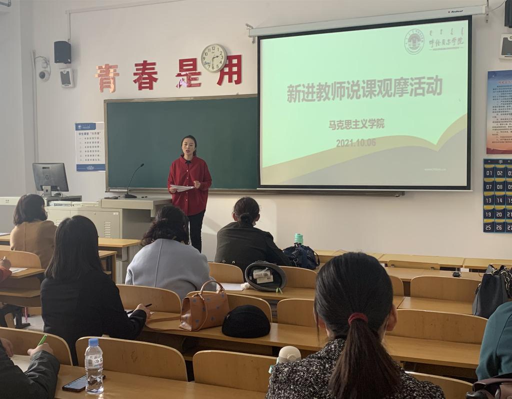 為提高新進教師的課堂教學技能,促進新進教師快速成長,10月6日下午,馬克思主義學院在崇文樓B122教室開展新進教師說課觀摩活動。學院6名中青年教師進行了示范說課,新進教師進行觀摩。