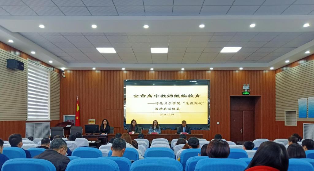 10月9日上午,2021年全市高中教師繼續(xù)教育“送教到校”活動啟動儀式在海拉爾鐵路第一中學舉行。繼續(xù)教育學院院長莎茹莉、副院長孫志文、授課教師范起超、何國林、邱慧、海拉爾鐵路第一中學方秀艷校長及海拉爾鐵路第一中學全體教師參加了啟動儀式。