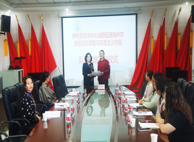 儀式上,李俏院長對馬克思主義學院的辦學歷史、專業設置和人才培養目標等進行了詳細介紹。新海中學和鄂溫克中學的校長分別介紹了各自學校的相關情況,并對馬克思主義學院培養的學生表示贊許。他們表示,今后愿意繼續深化合作,形成優勢互補、資源共享、雙方共贏、共同發展的新局面。雙方就推進“實習、見習、研習”、邀請骨干教師授課和搭建思政課大中小一體化共同體平臺等事宜進行了詳細討論。隨后,雙方簽訂了共建校外教學基地協議書。
