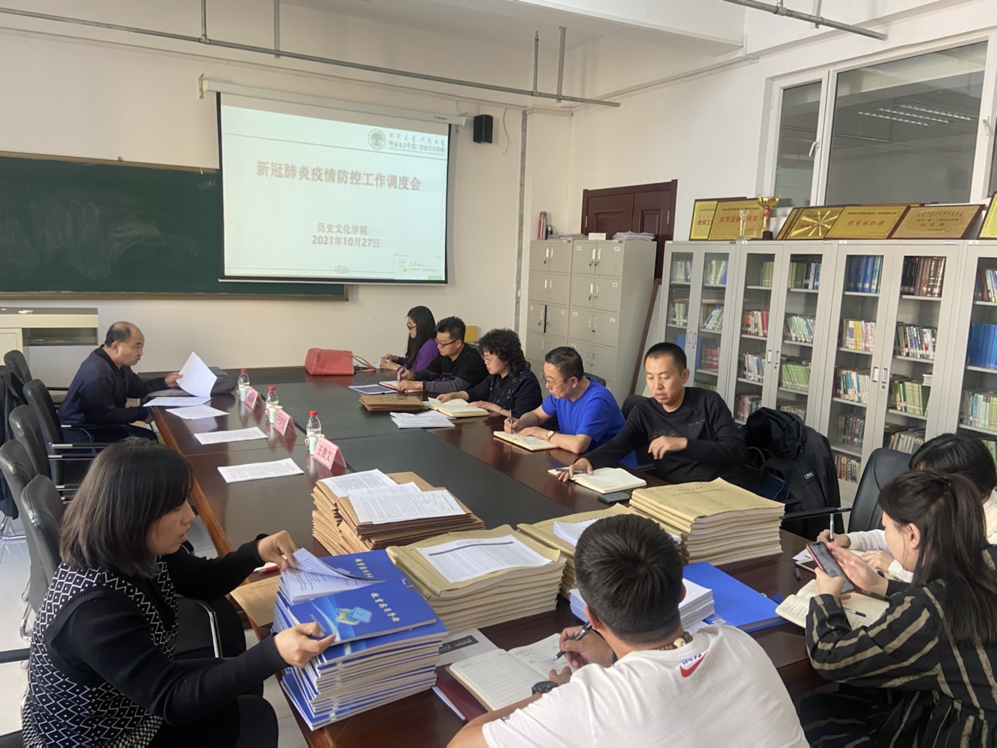 10月27日下午,歷史文化學院在崇文樓B328召開防控疫情緊急工作會議。歷史文化學院黨總支書記梁云主持會議,全體教職工參加會議。