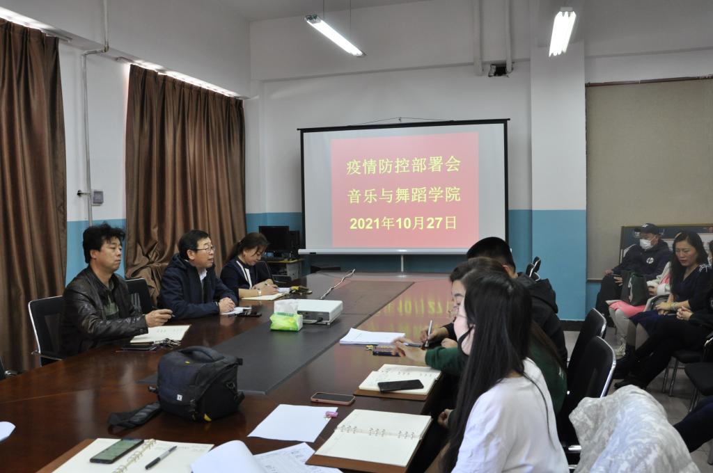 10月27日下午,音樂與舞蹈學院組織全體教職工在藝術樓606會議室召開疫情防控工作部署會,貫徹落實學校疫情防控會議精神,并對音樂與舞蹈學院疫情防控工作進行安排和部署。