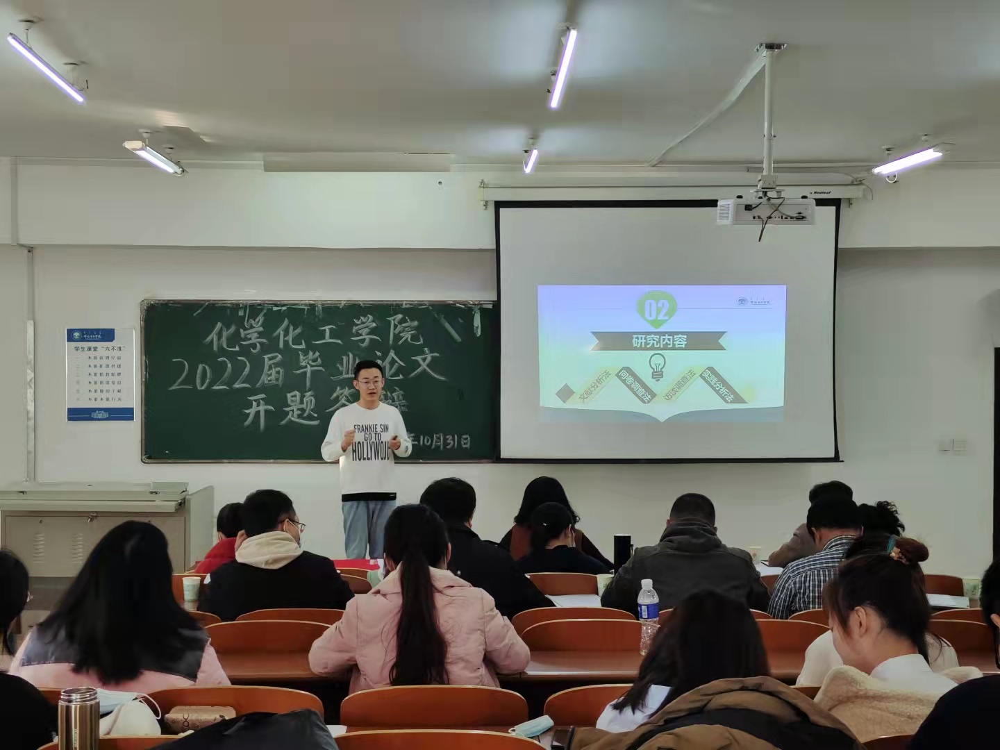 根據(jù)畢業(yè)論文管理工作程序和要求,化學(xué)化工學(xué)院在學(xué)校學(xué)生論文管理系統(tǒng)進(jìn)行了論文題目申報(bào)、師生雙選、開題報(bào)告評(píng)閱等前期工作。經(jīng)過指導(dǎo)教師參與審定、專業(yè)負(fù)責(zé)人審核等環(huán)節(jié),最終通過審核的66名學(xué)生參加了第一次論文開題答辯。同時(shí),本次答辯會(huì)還為不能到場(chǎng)參加答辯的學(xué)生提供了線上答辯環(huán)節(jié)。