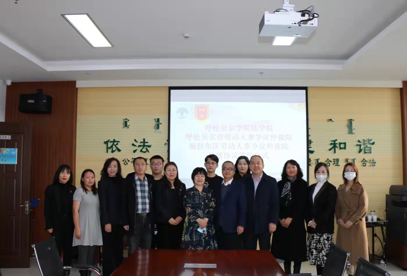 為促進法學教育與司法實踐有機結合,提高人才培養質量,11月5日上午,法學院與呼倫貝爾市勞動人事爭議仲裁院、海拉爾區勞動人事爭議仲裁院舉行共建簽約揭牌儀式,共建法學教育實踐基地。呼倫貝爾市人社局副局長褚桂鳳、海拉爾區人社局局長丁永、副局長姜海來、呼倫貝爾市勞動人事爭議仲裁院院長鄂敏、副院長王聰穎、海拉爾區勞動人事爭議仲裁院院長門曉英、仲裁員付智華、法學院院長馬斌及教師代表出席會議。
