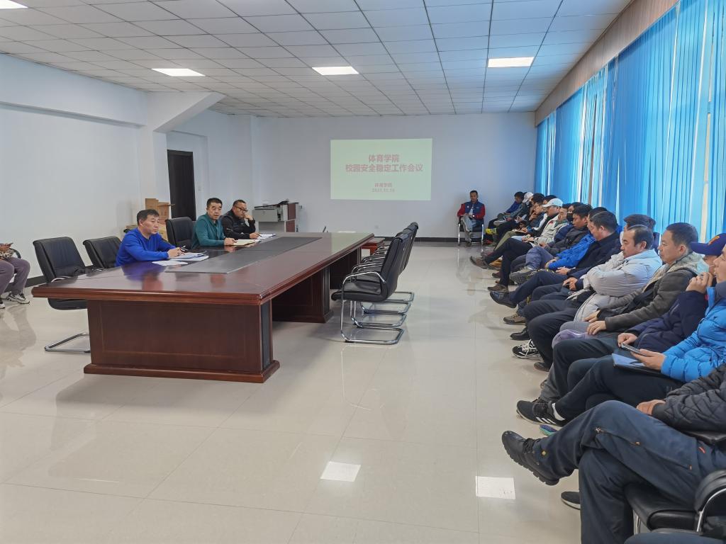 11月10日下午,體育學院在東山田徑場二樓會議室召開2021年度安全穩定工作會議,體育學院院長李曉峰、黨總支副書記胡日查、副院長林劍冬及全體教師參加了會議。