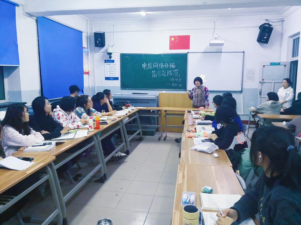 為進一步推進黨史學習教育各項部署落地見效,努力完善學院黨總支、支部、黨員三位一體黨建工作體系,落實《外國語學院領導干部聯系實施辦法》,11月4日至10日,外國語學院領導班子深入各個班級,參加防詐騙安全教育主題班會,并針對最近發生的校園網絡詐騙事件,和同學們展開討論,分享 “防網絡詐騙提示”。