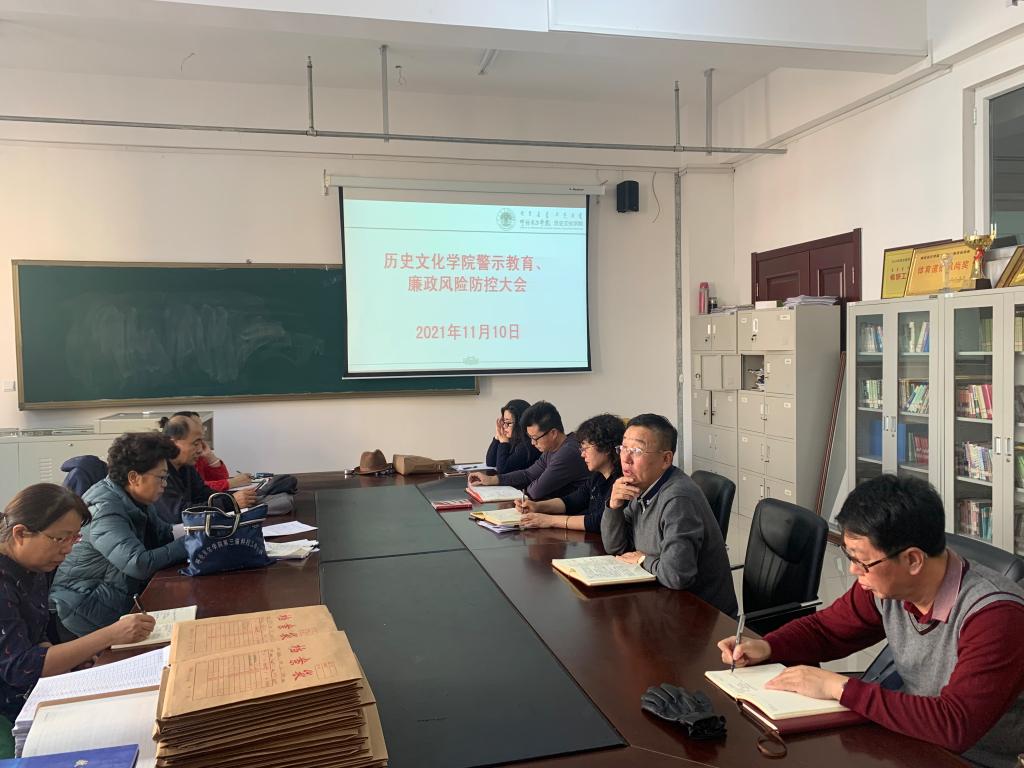 為深化黨史學習教育,提升廉政風險防控能力,推進全面從嚴治黨、師德師風建設向縱深發展,11月10日,歷史文化學院召開廉政風險防控、警示教育大會,學院全體教師參加。