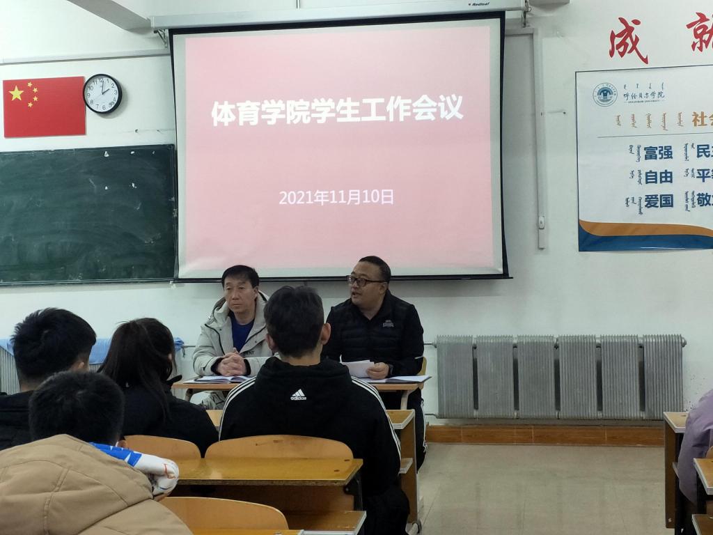 為了進一步加強學風建設,增強學生學習的積極性和主動性,促進大學生的健康成長和綜合素質的全面提高,認真做好本學期學院的各項學生工作,根據學校疫情防控要求,11月10日-18日,體育學院分批召開了2019級、2020級、2021級全體學生學風建設暨安全教育工作會議。體育學院黨總支副書記胡日查,副院長林劍冬以及全體輔導員和班主任參加了會議。