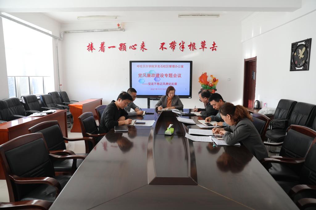 為深入推進黨風廉政建設工作,11月19日上午,牙克石校區(qū)管理辦公室在知行樓三樓會議室召開黨風廉政專題會議,會議由牙克石校區(qū)管理辦公室黨支部書記、主任劉素華主持,校區(qū)領(lǐng)導及各科室負責人參加會議。