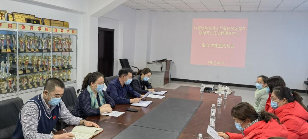 體育學院與海拉爾區奮斗鎮綠苑社區黨群服務中心簽訂融合黨建協議