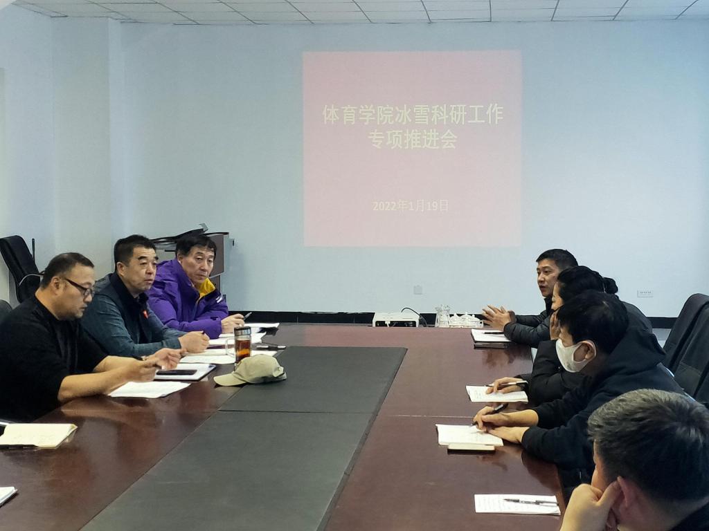 為深入落實學校重大科研項目計劃的擬定工作,1月19日上午, 體育學院院長李曉峰組織本院冰雪科研團隊成員,在東山體育館二樓會議室召開了“體育學院冰雪科研工作專題研討會”。
