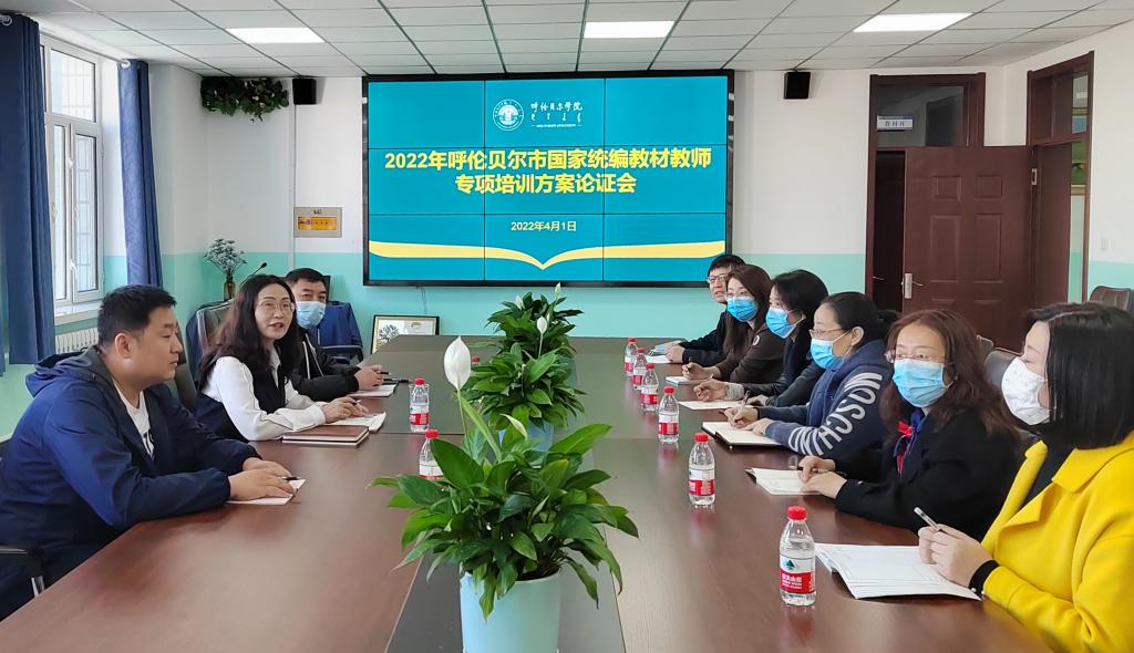 3月31日下午,在我校西校區三樓會議室召開了2022年呼倫貝爾市國家統編教材教師專項培訓方案論證會,海拉爾區健康街小學副校長康蕾、天嬌小學副校長呼日查、教研員王靜飛等六位授課專家及繼續教育學院負責此次培訓人員參加了會議。繼續教育學院院長莎茹莉主持會議。