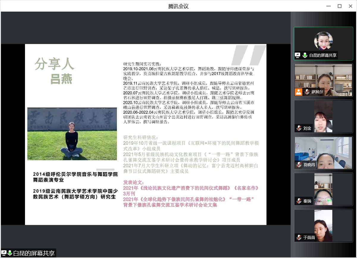 為增強學生學習與考研規劃意識,拓寬學生考研備考規劃思路,4月18日晚,音樂與舞蹈學院舞蹈系特邀我校舞蹈系優秀畢業生代表通過騰訊會議線上分享她們的學習方法和考研的心路歷程。舞蹈系主任白昆、班主任薩其爾、肖源、辛毅、吳格麗及舞蹈系全體同學共80余人參加講座。