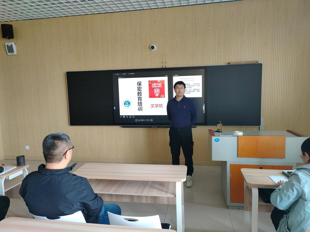 為進一步增強廣大教職工國家安全意識和保密意識,自覺履行維護國家安全職責(zé),深化平安校園建設(shè),5月11日下午,文學(xué)院在崇文樓B座502智慧教室開展安全保密教育專題課,文學(xué)院院長曹存有主講,文學(xué)院全體教職工參加。