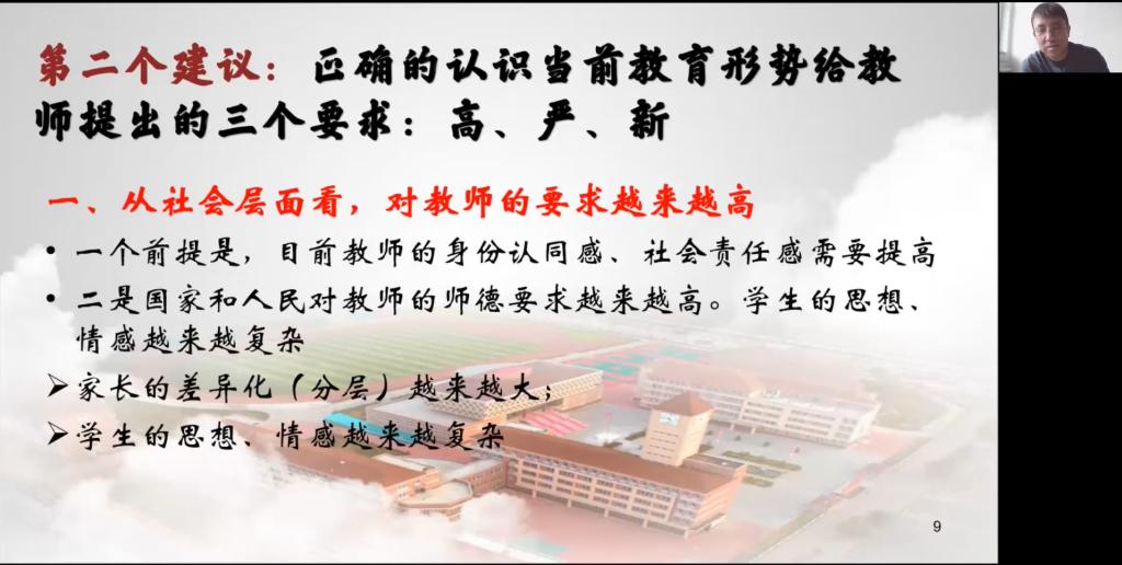 為進一步落實立德樹人根本任務,幫助師范生盡早進入教師角色、積極提升教育教學實踐能力,5月15日上午,數學與統計學院邀請海拉爾區學府路中學校長翟永軍和海拉爾第一中學校長旦森扎布通過騰訊會議線上開展了專題講座。數學與統計學院領導班子、系主任、實驗實訓中心教師、骨干教師和2018、2019、2020、2021級共260名學生參加了本次專題講座。講座由數學與統計學院實習實訓中心主任長林主持。