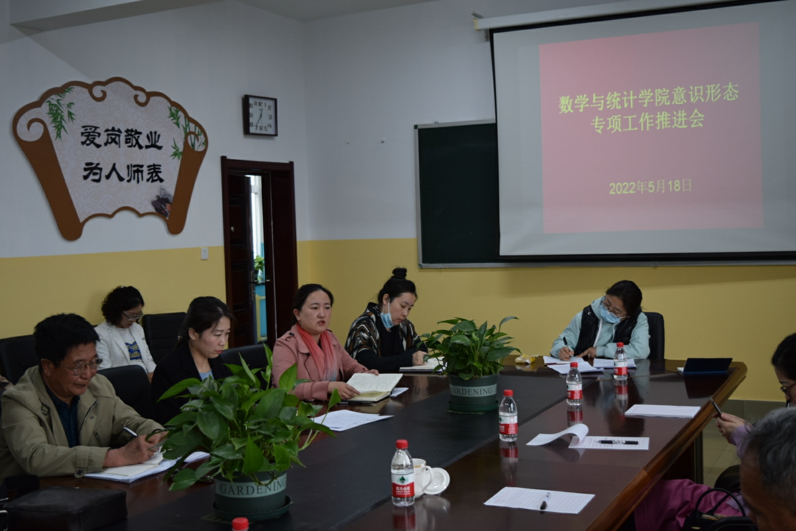 5月18日下午,數學與統計學院召開意識形態專項工作推進會。全體教職工參加會議,會議由數學與統計學院黨總支書記宋旭霞主持。