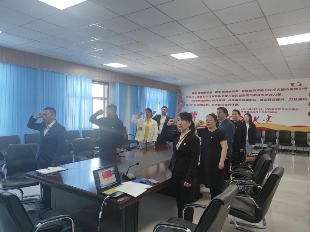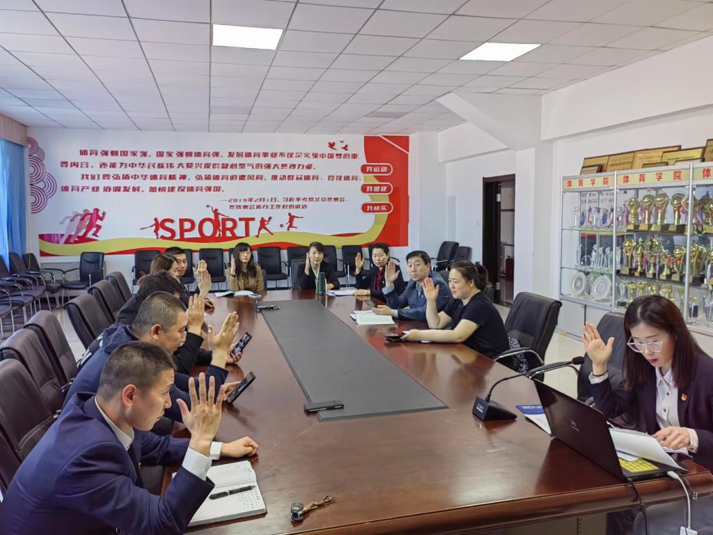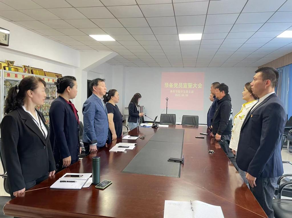 6月6日上午,體育學院學生黨支部預備黨員宣誓儀式在東山體育場2樓會議室舉行,部分學生利用騰訊會議線上線下同步舉行。體育學院黨總支書記李偉艷、黨總支副書記胡日查畢力格、學生支部全體黨員及新發展的14名預備黨員參加宣誓儀式。