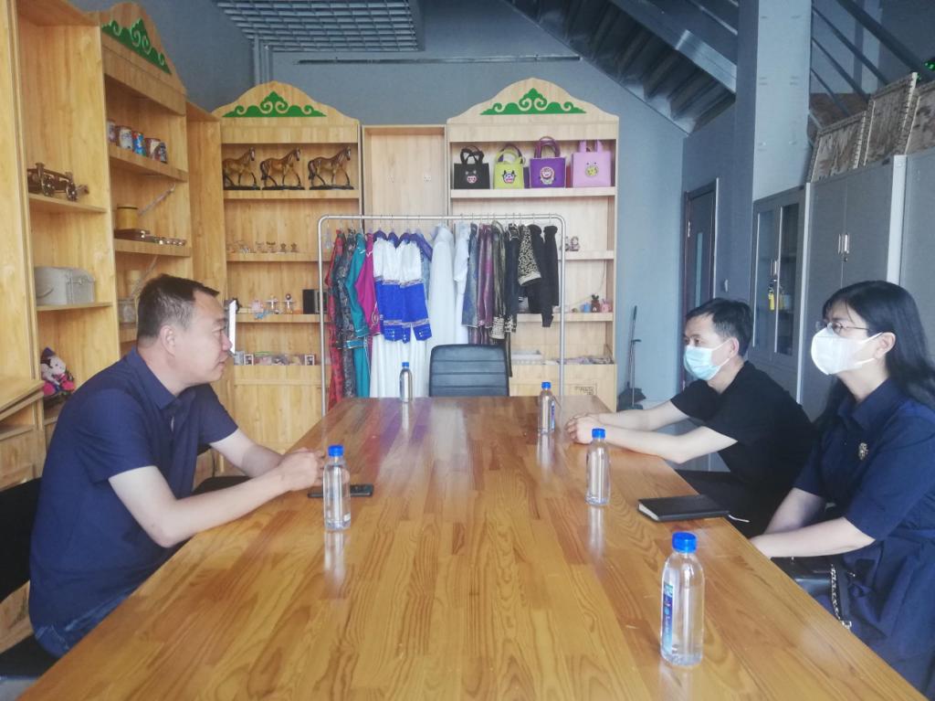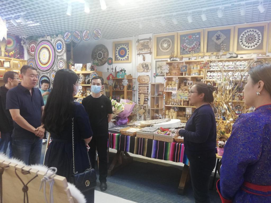 傳媒學院調研小組在鄂溫克旗就業局局長孟巖松及園區管理人員陪同下,參觀了民族文化產業創業園區內皮畫雕刻、民族繪畫、太陽花手工制作等創業工坊,并與民族非物質文化傳人展開深入交談,了解了工坊創業就業情況及發展中存在的問題和思路對策等。