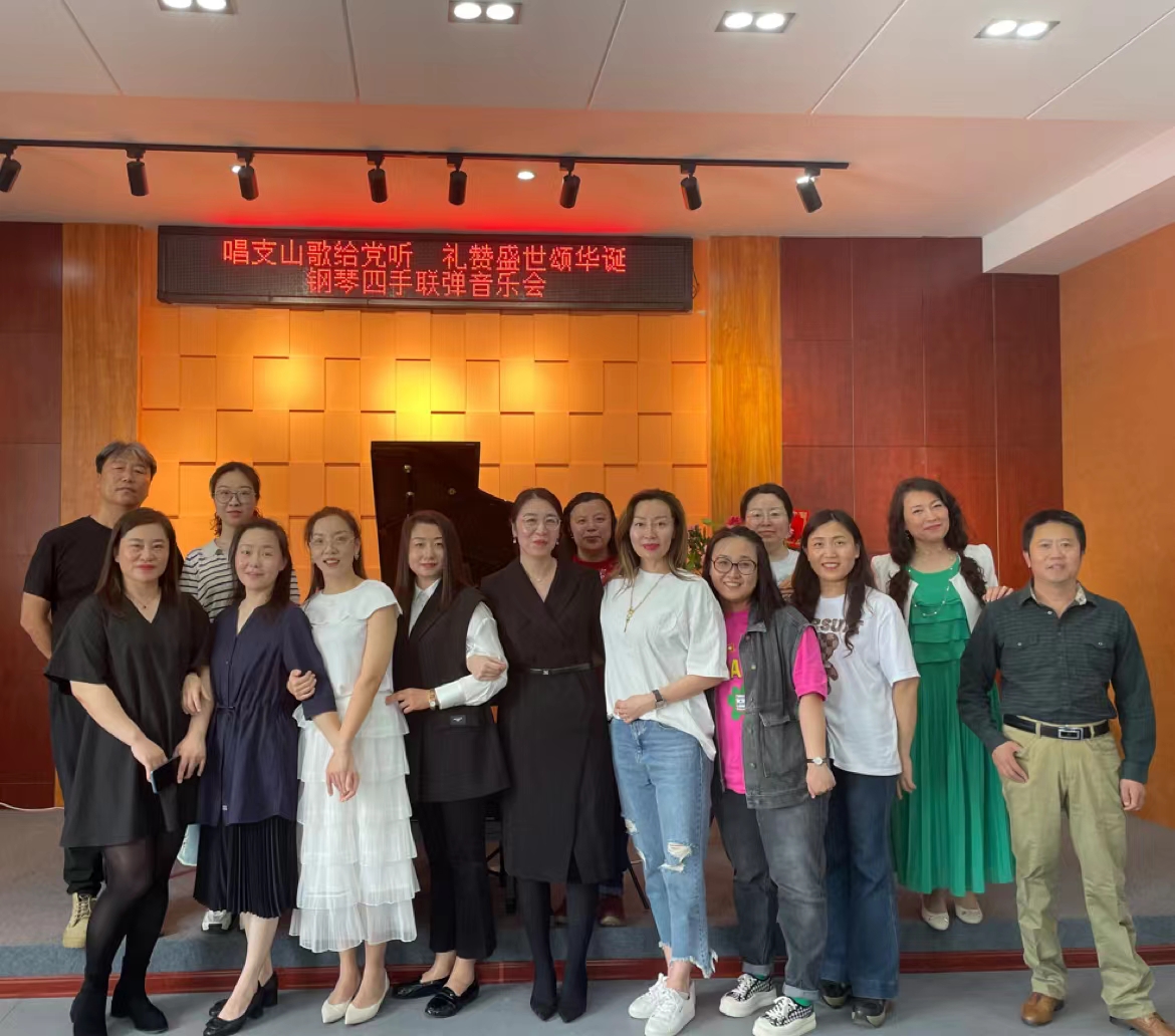 6月15日下午,音樂與舞蹈學院鋼琴系舉辦了“唱支山歌給黨聽,禮贊盛世頌華誕——鋼琴四手聯彈云端音樂會”。各年級學生和老師在抖音直播間和現場進行觀看音樂會。
