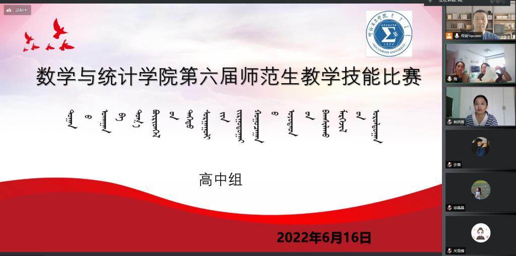為加強(qiáng)師范生專業(yè)基本技能,提高師范生的教育教學(xué)實(shí)踐能力,推動(dòng)大學(xué)生實(shí)踐教學(xué)改革,數(shù)學(xué)與統(tǒng)計(jì)學(xué)院于6月16日利用騰訊會(huì)議平臺(tái)線上舉辦了“第六屆師范生教學(xué)技能大賽(暨第二屆微課程線上教學(xué)技能大賽)”。本次比賽面向數(shù)學(xué)與統(tǒng)計(jì)學(xué)院全體師范生,特邀海拉爾第一中學(xué)和海拉爾第九中學(xué)五位優(yōu)秀一線教師以及數(shù)學(xué)與統(tǒng)計(jì)學(xué)院長(zhǎng)林、吳紅艷、林紅燕、石磊、吳美華老師共同擔(dān)任比賽評(píng)委。