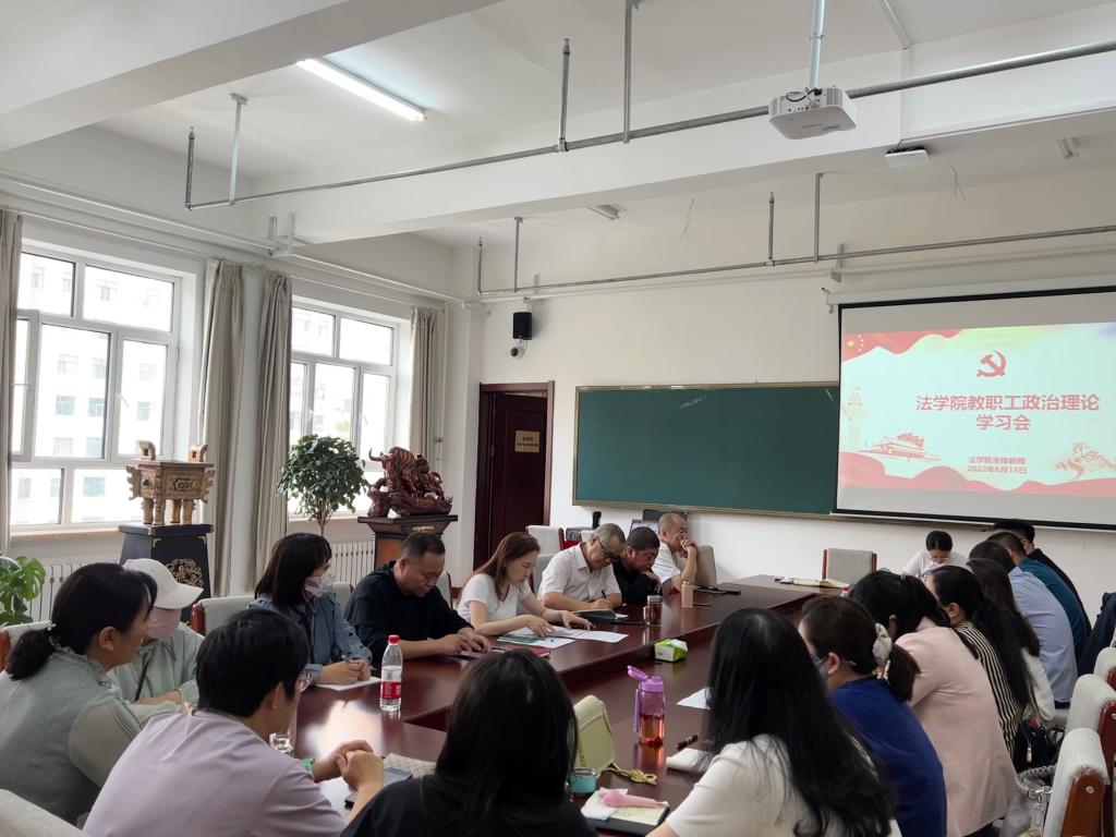 為落實學校《關于認真做好近期理論學習工作的通知》精神,全面學習貫徹習近平新時代中國特色社會主義思想,進一步提高政治站位,加強理論武裝,推進理論學習工作,6月15日,法學院組織全體教職工召開政治理論學習會,會議由法學院黨總支書記蘇杰主持。