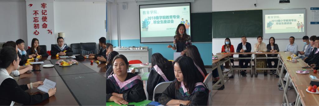 一場座談會。6月13日,教育學(xué)院按小學(xué)教育、學(xué)前教育、心理學(xué)三個專業(yè)分別召開了2022屆畢業(yè)生座談會,由各專業(yè)系主任主持。各專業(yè)教師圍繞教育學(xué)院人才培養(yǎng)等方面進(jìn)行意見征集和座談。聽取畢業(yè)生對教育、管理、服務(wù)等方面的意見和建議以及各專業(yè)學(xué)生就業(yè)情況。參會領(lǐng)導(dǎo)和老師給予畢業(yè)生誠摯的祝福和殷切的期望,希望同學(xué)們關(guān)注母校發(fā)展,常回家看看。
